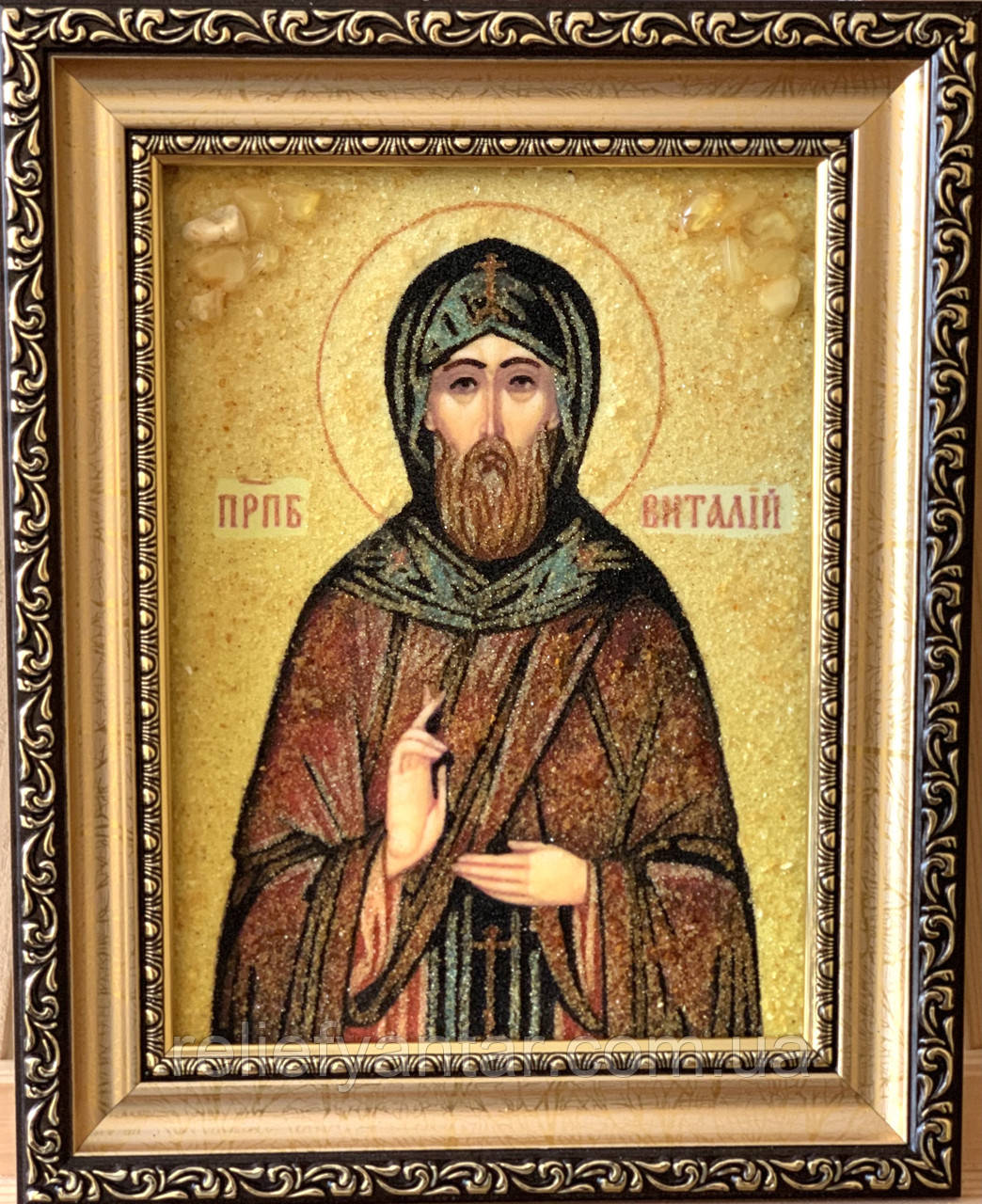Ікона з янтаря "Святий Преподобний Віталій" 15x20 см , Св. Віталій ікона з бурштину 15x20 см