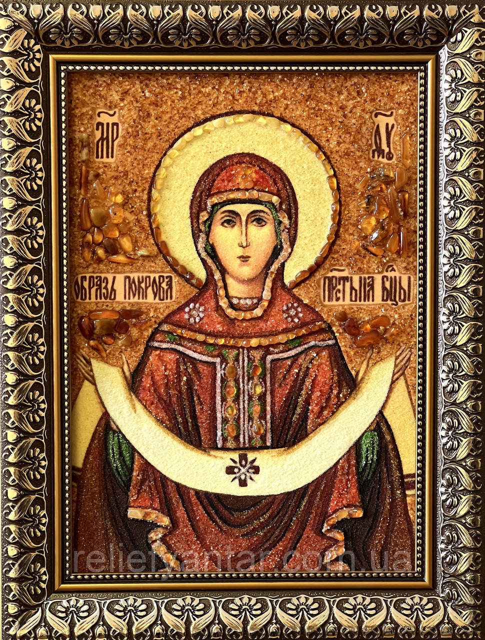 Ікона з бурштину Покрова Пресвятої Богородиці 20*30 см